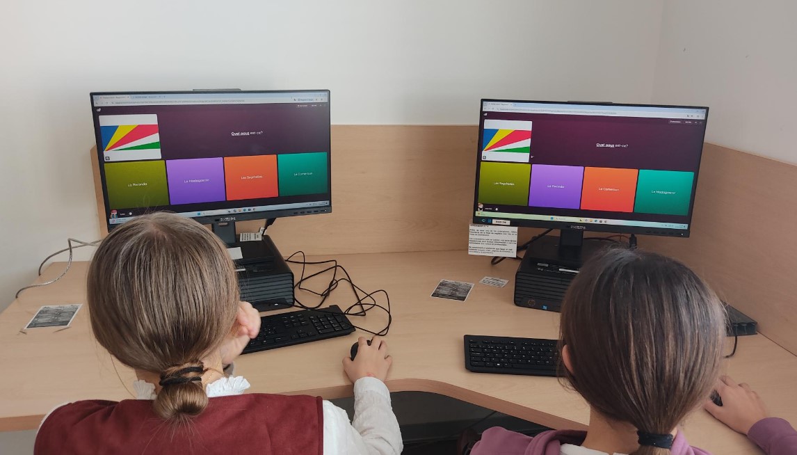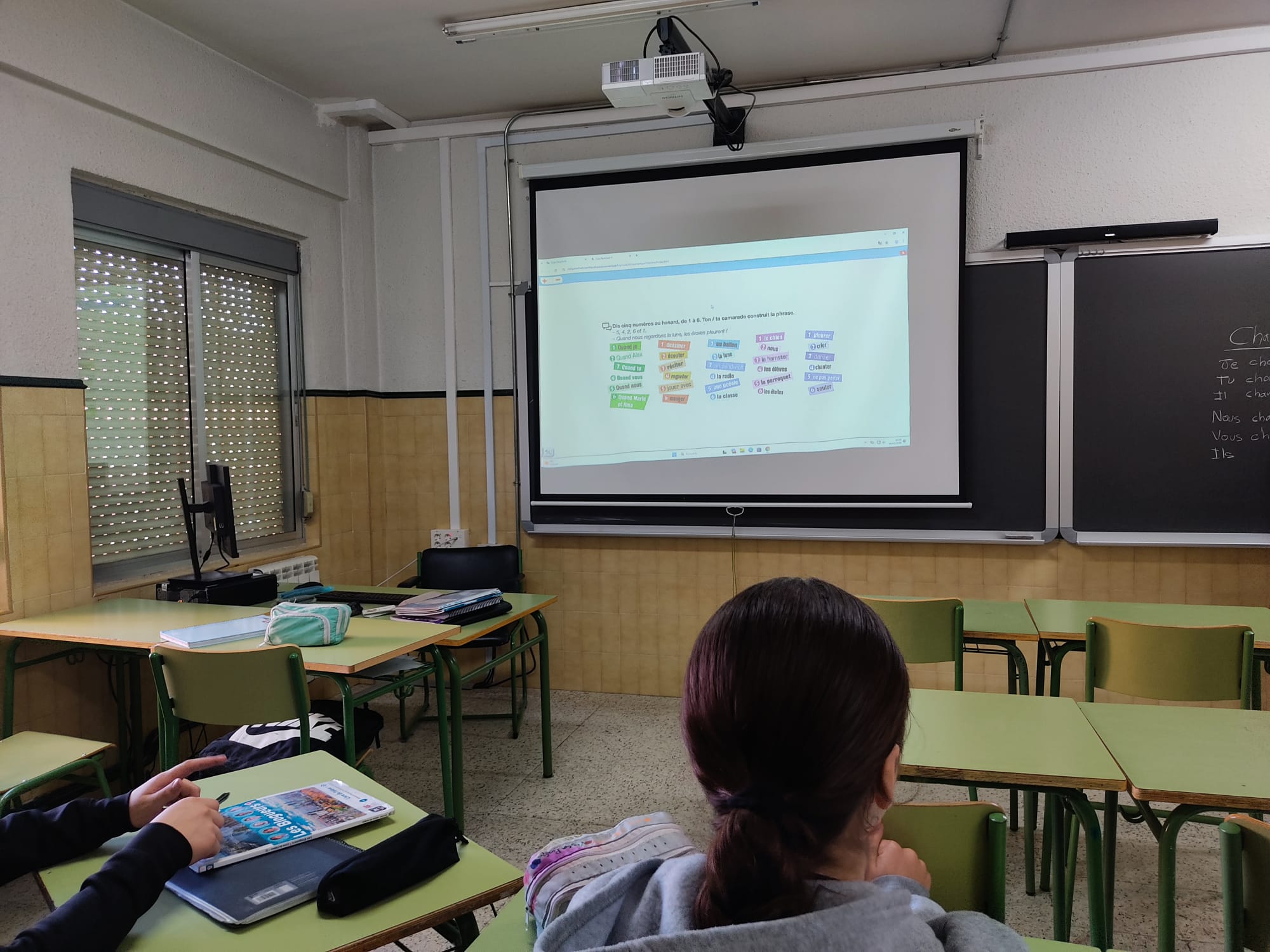 Vino a verme Céline, del IES Ferrari y Véronique Rocher, Asesora de francés del CFIE de Valladolid. Céline compartió estas fotos, que hice en la biblioteca con los de 1ºA: