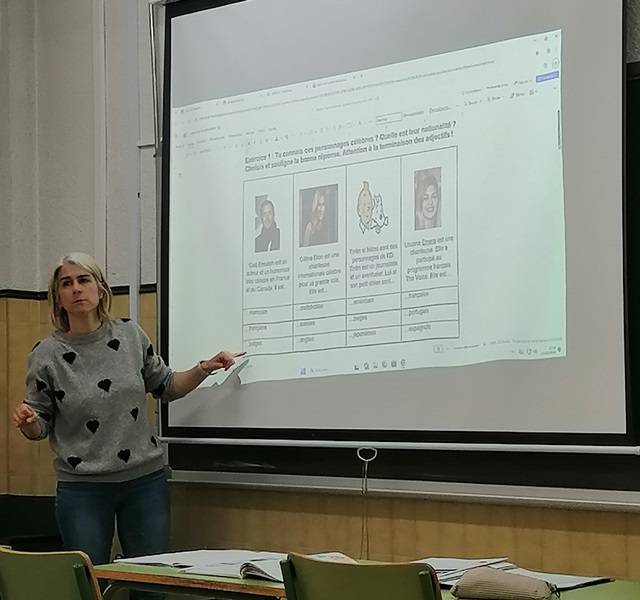 El de 1º ESO cuya primera lengua es el francés, se empezó repasando los contenidos vistos en la sesión anterior sobre las nacionalidades entre los mismos alumn@s, además de los cambios que sufre la escritura entre el masculino y el femenino, así cómo la pronunciación.